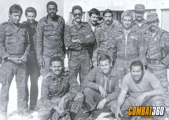 A group of Cuban pilots in Angola. Alberto Ley Rivas is crouching in the front row furthest right, wearing a t-shirt. Fourth from the right at the back is Danasio Valdés, shot down by SAAF Mirages in a MiG-21 in 1981