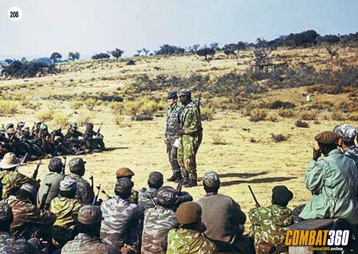 A firearms training session at the Jumbo training center shooting range. In the center is military interpreter Lieutenant Ferid Munirovich Zulkarneev. Soviet specialists at the training center often assigned trained interpreters to conduct some of the training themselves. Among the SWAPO fighters, sitting on the right, is adviser Lieutenant Colonel Ivan Pavlovich Svyatetsky, 1985. Photo from F. Zulkarneev’s archive