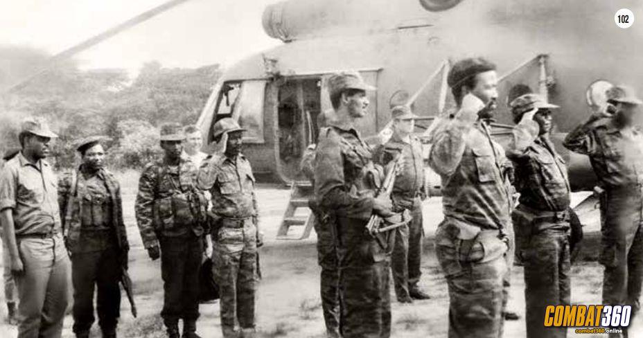 MPLA-PT Colonel João Ernesto dos Santos “Liberdade”. In the group of accompanying persons is the senior group of the SAF under the ANC M.I. Konovalenko. Angola, 1987. Photo from the archive of M. Konovalenko