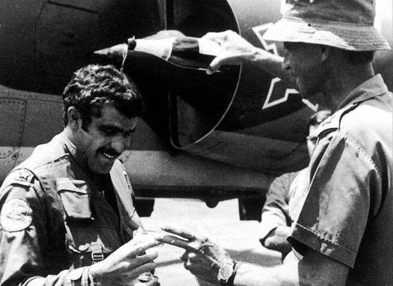 5 Oct 1982 – The Officer Commanding #Ondangwa Air Force base – Colonel De Villiers pours champagne on the head of Cobus Toerien in a South African Air Force tradition to celebrate an air combat “kill”.