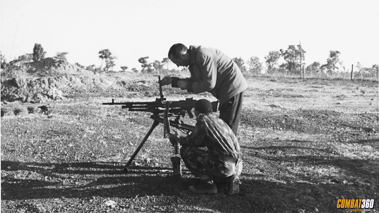 Óscar Cardoso providing training on the handling of a 7.62mm FN MAG light machine gun to a Flecha Bushman