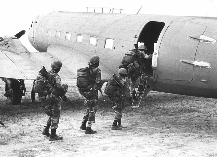 Adding a Dakota to the Fire Force deployment the Rhodesian African Rifle soldiers were parachuted at low altitudes into the contact zone #RAR #Rhodesian