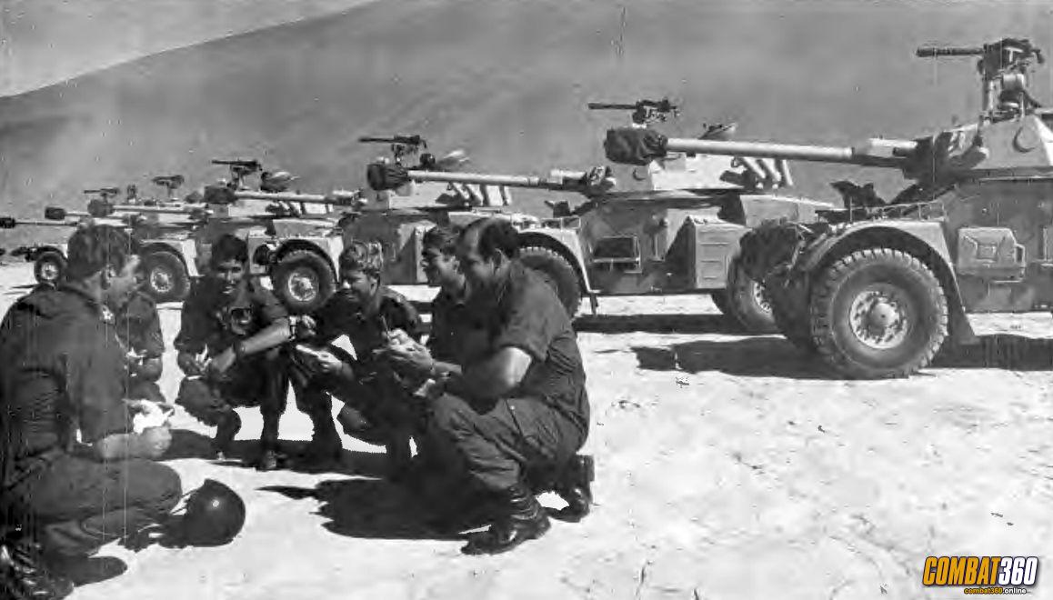 Crew of an #Eland 90 armoured car at work freeing their vehicle, after it bogged down in a flooded shona (flood plain) during the annual rainy season in Ovamboland – South West Africa/Namiba.