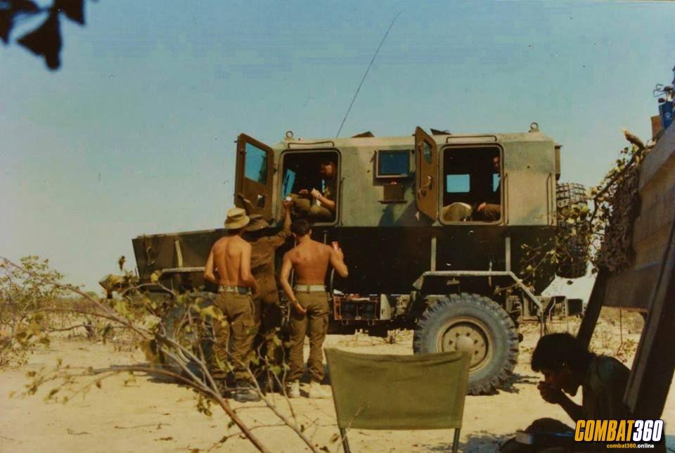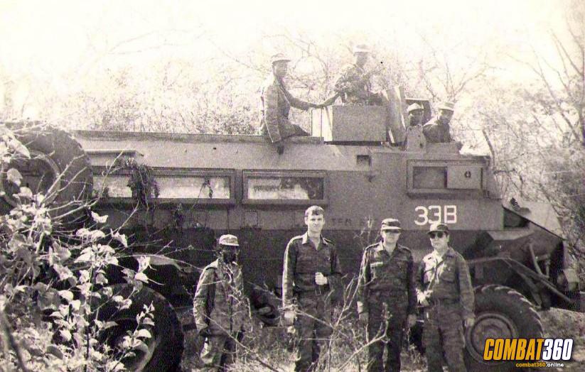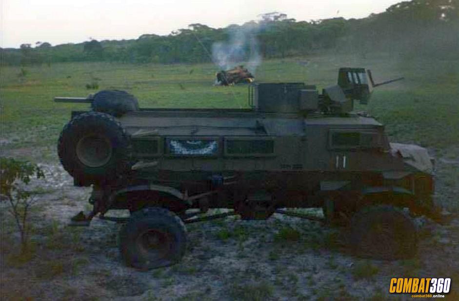 The knocked out Casspirs of 2nd Lt Anton Botes, at the back, and Lt Pierre Blignaut, in the foreground, at the battle of Indungo on October 31, 1987 during Operation #Firewood