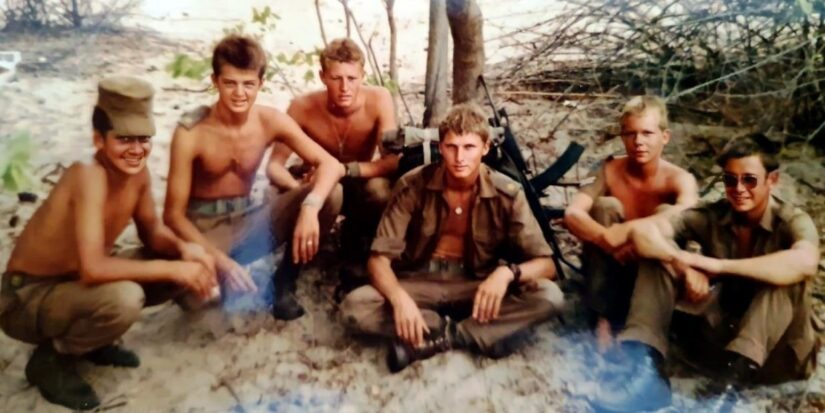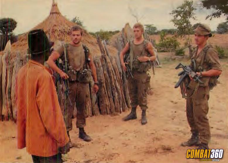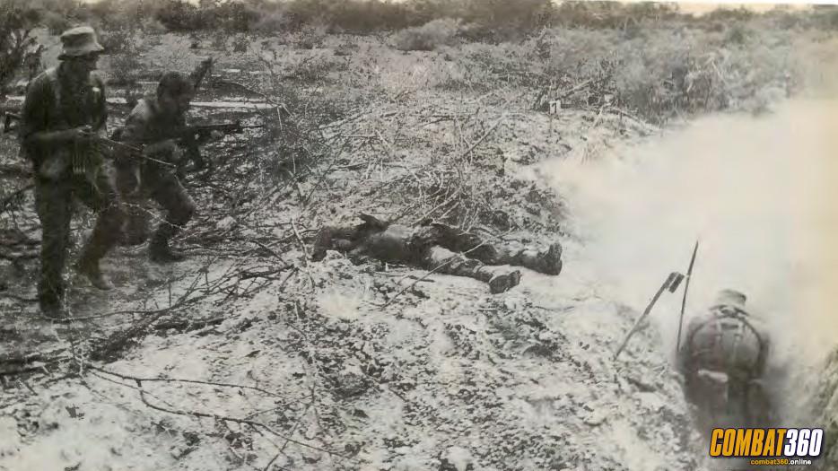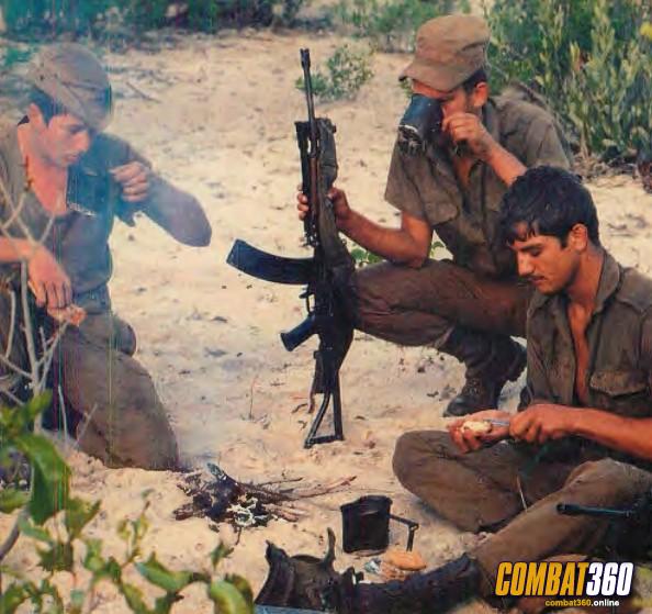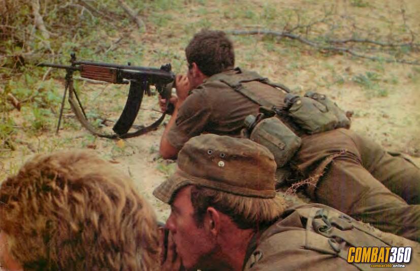 SADF troop firing his R4 from an ambush position