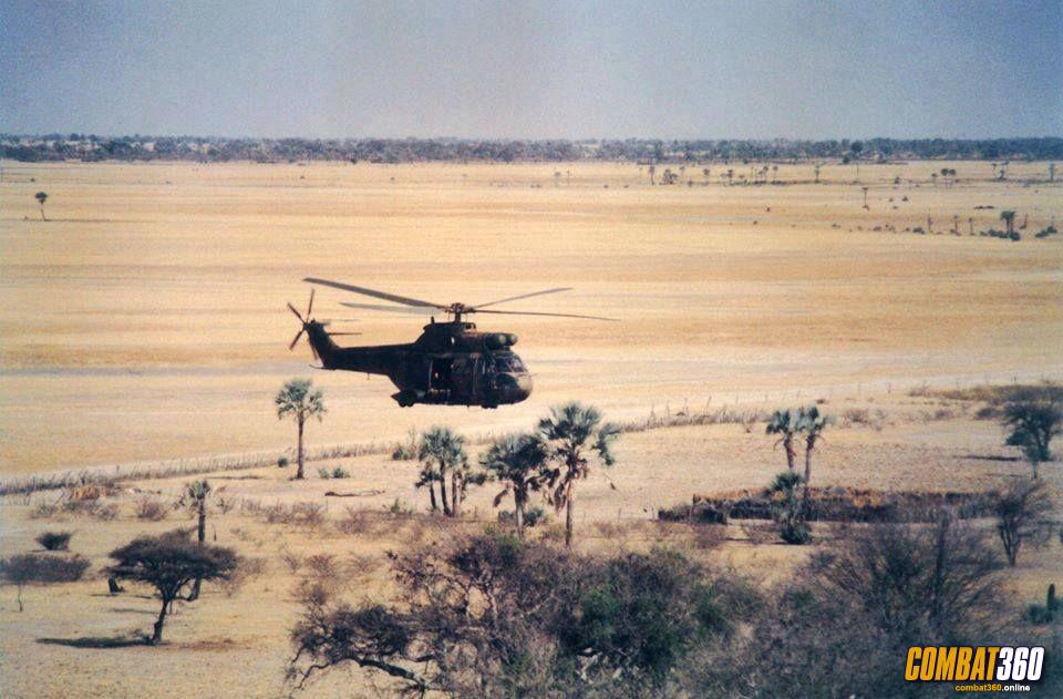 #Puma helicopter flying over #Ovamboland in the now Namibia.