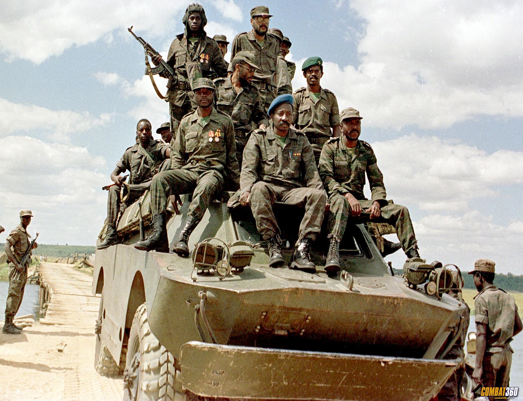 FAPLA troops hitching a ride on a soviet-built BRDM