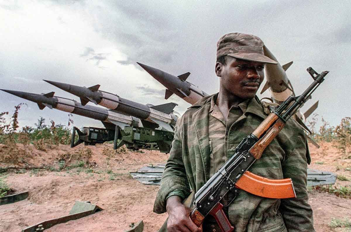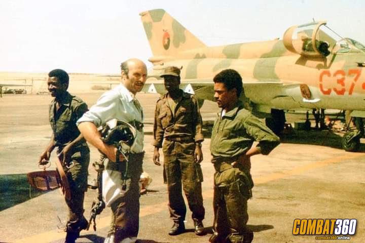 Soviet or Cuban Pilot photographed alongside an Angolan Air Force #MiG-21bis fighter jet, mid-1980s.