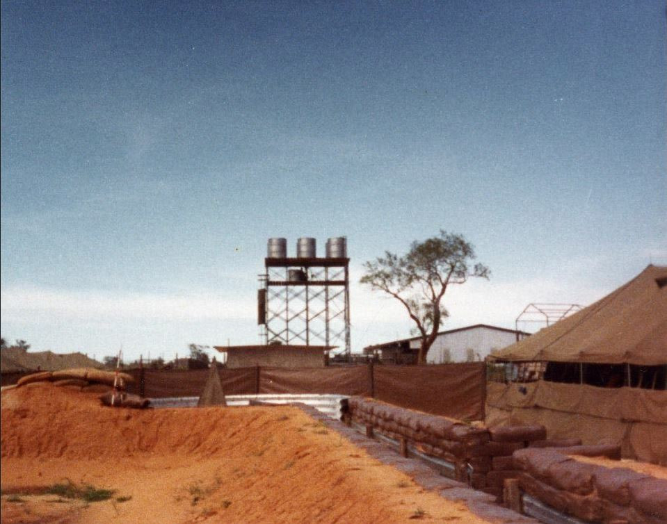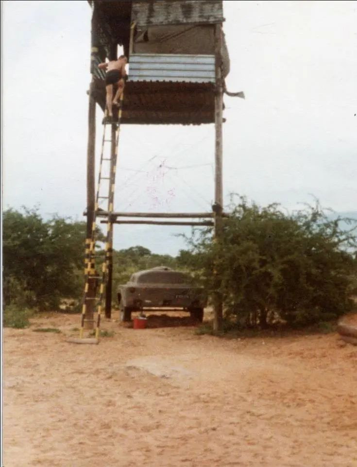Photograph of #Nepara Base with the observation platform (aapkas) just below the water tanks 1985