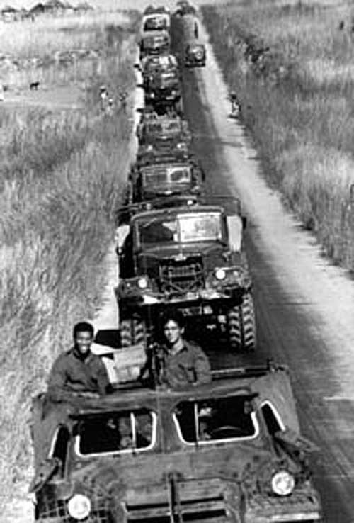 Typical image of #Cuban convoy in #Angola. Note the #BRDM-52 armored vehicle in the foreground and the surveillance soldiers deployed on both sides of the road, evidently doing their job poorly. In the 80s, Cuban troops only controlled the large cities and had to move during the day in heavily protected caravans to resolve supplies, tactical…Read More