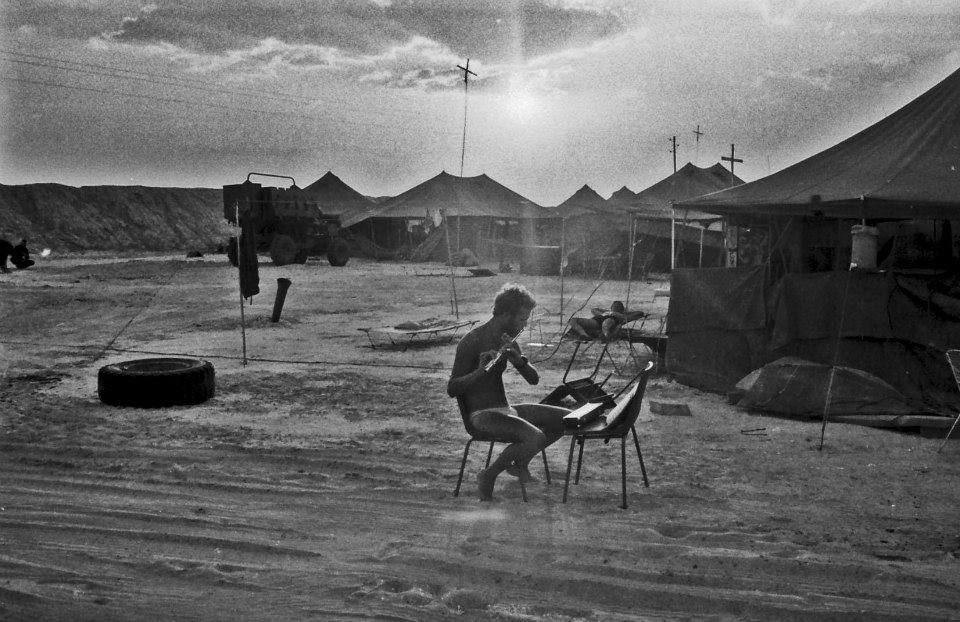 ‘John – the conscript’. #Ondangwa airforce base. Northern SWA/Namibia during the Bush War. This iconic photo says everything about a SADF national serviceman conscripted from his comfort zone and placed into a war zone. Copyright Outapi War Museum.