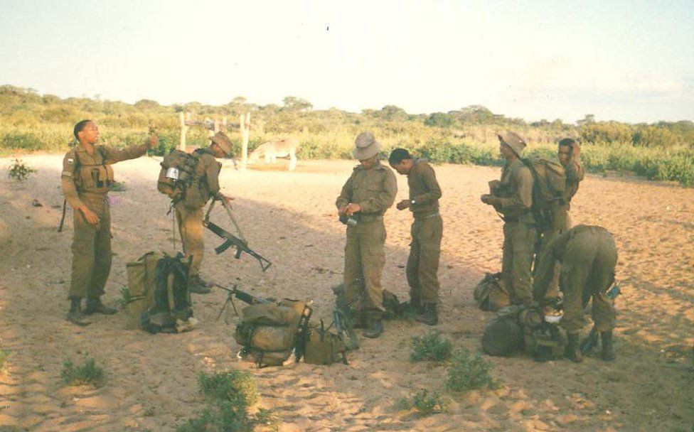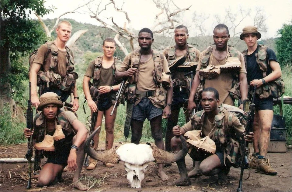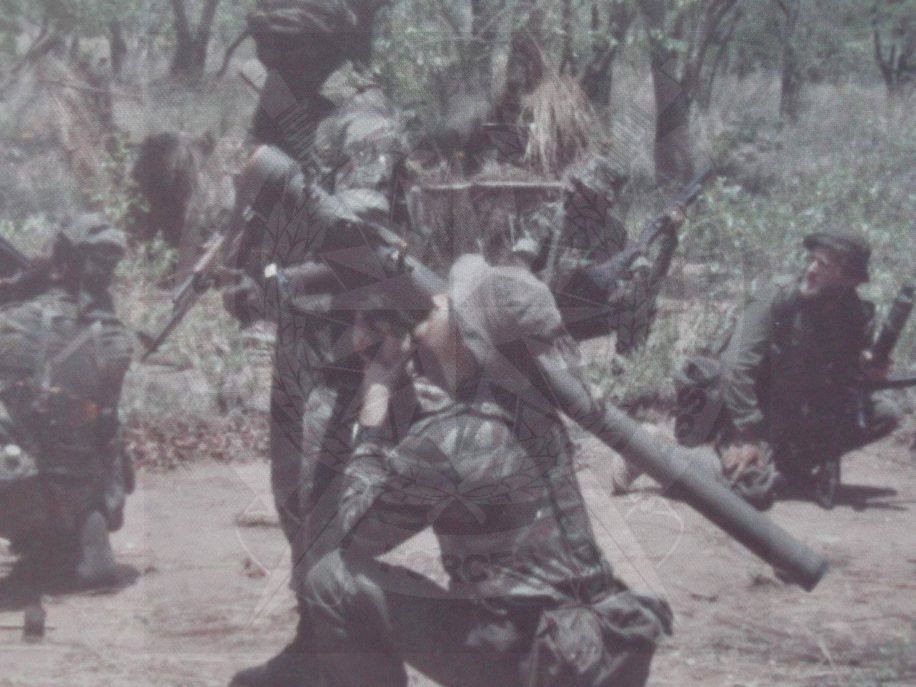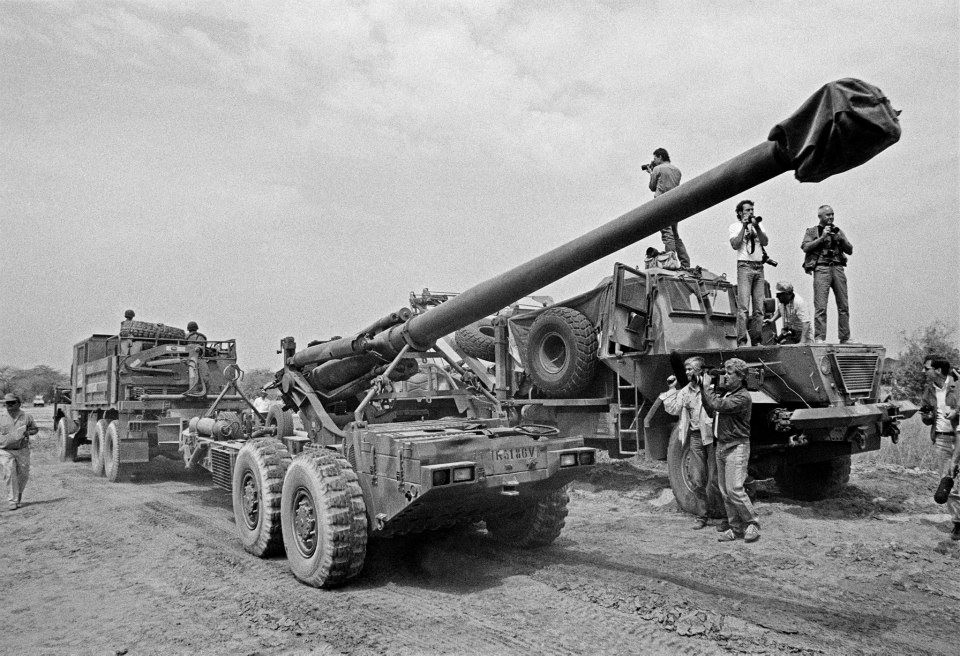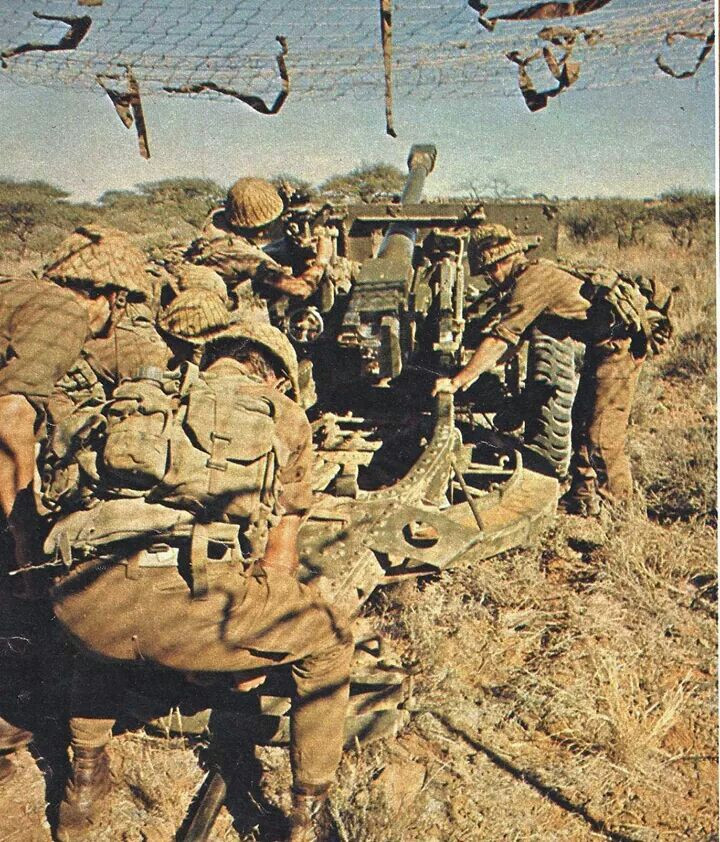SADF 25 pounder crew in action, 1977. Good detail of their Pattern 70 webbing and Ottom helmets.