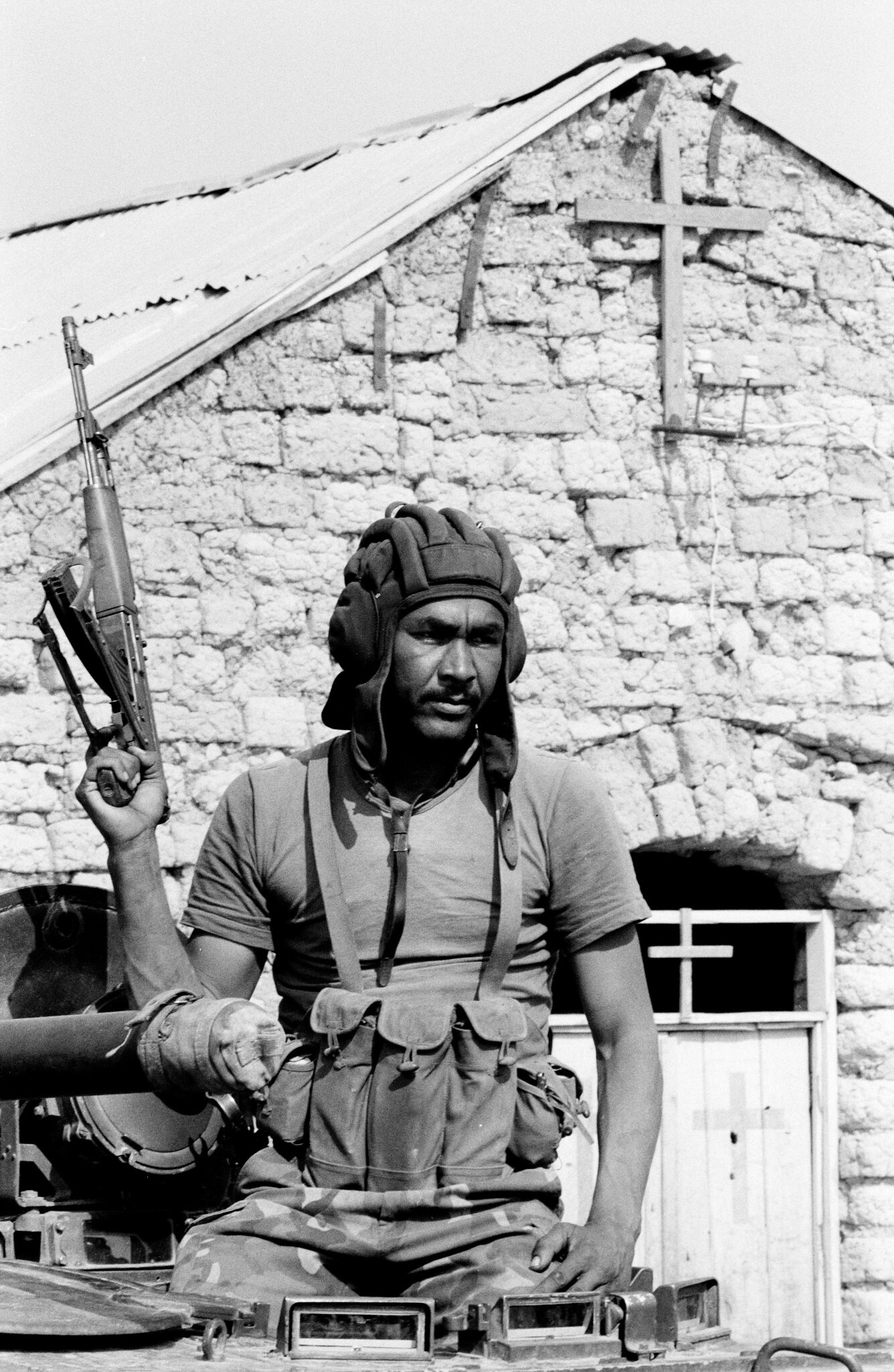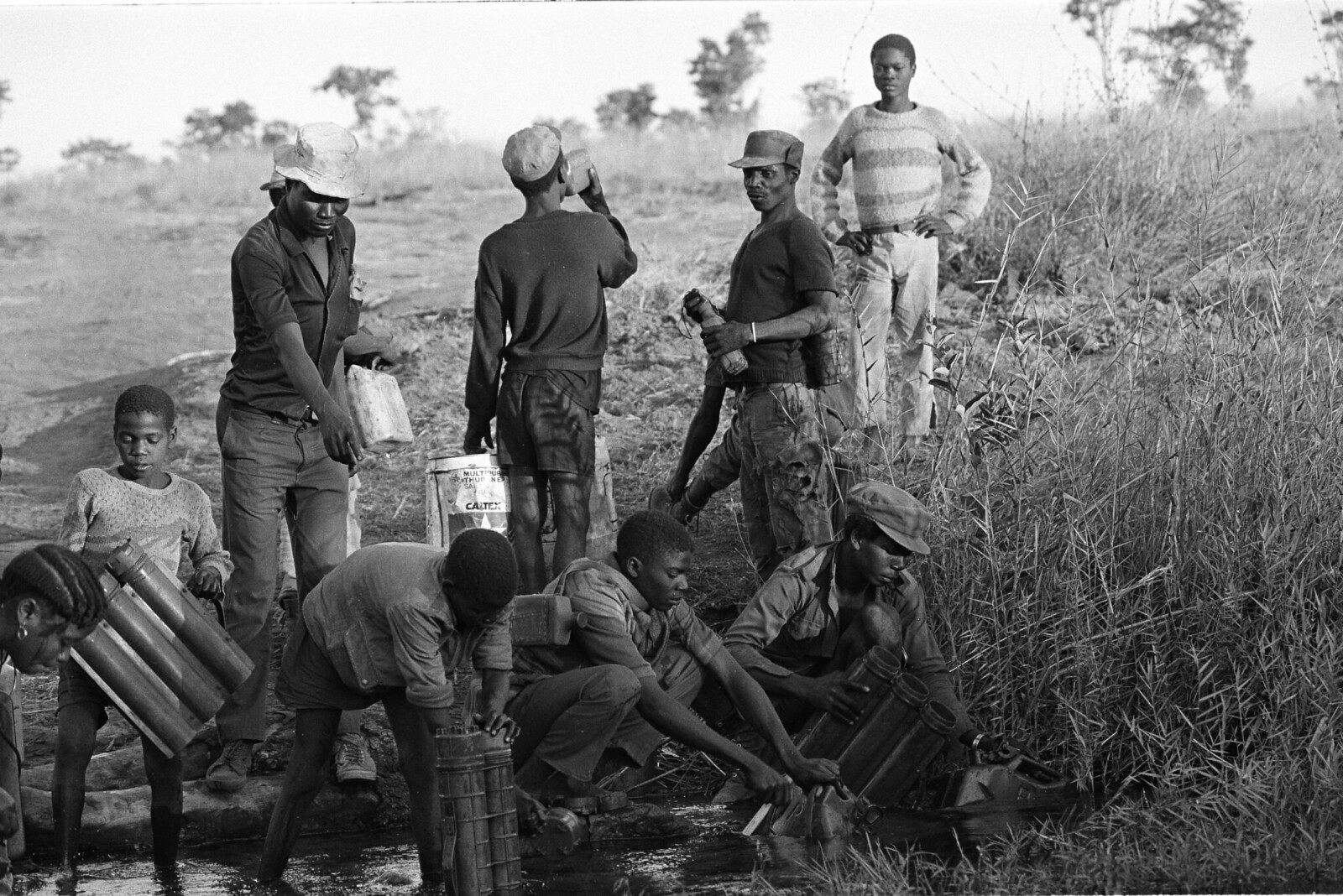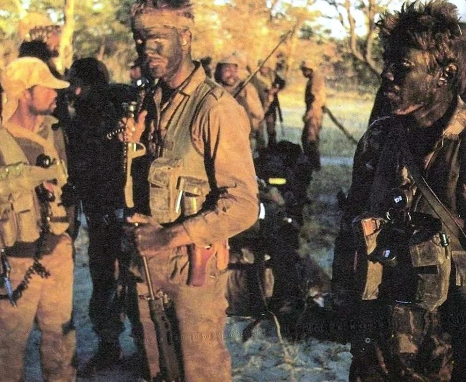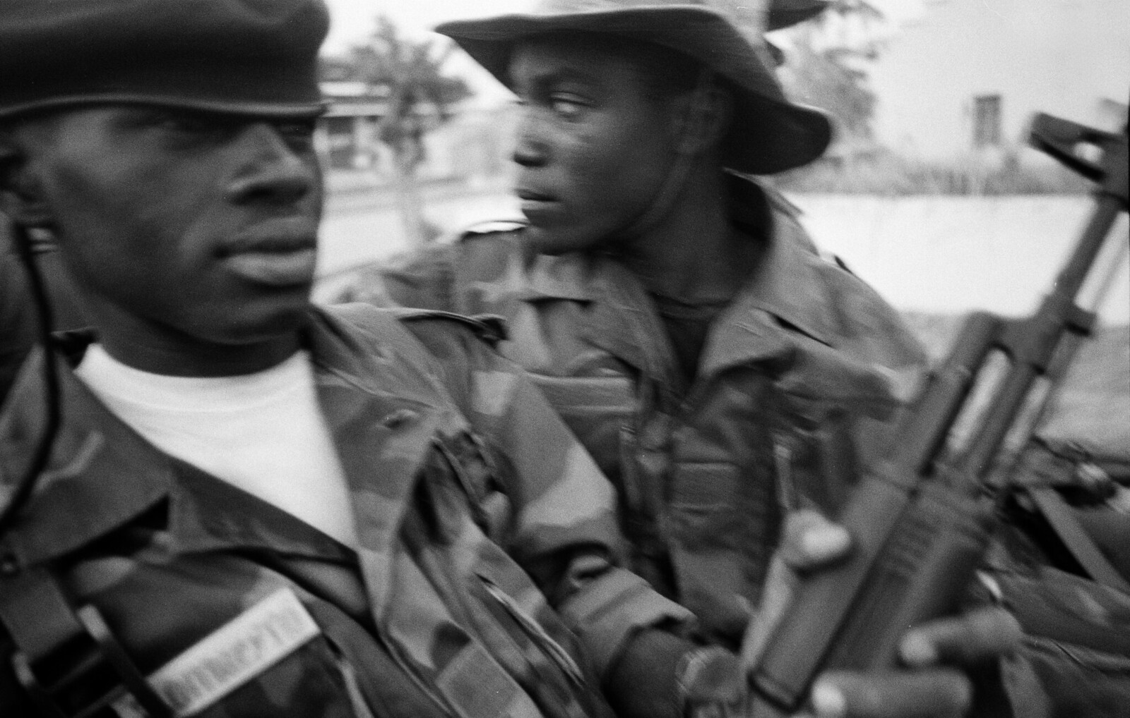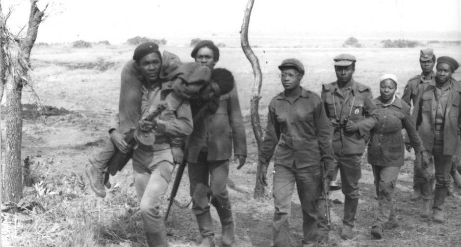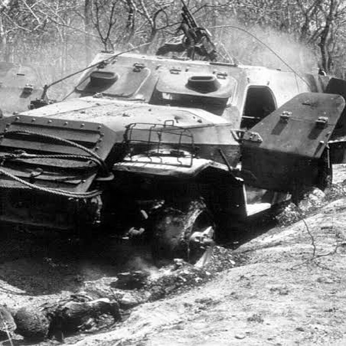Soldiers from #FAPLA (Forças Armadas Populares de Libertação de Angola), the armed branch of the MPLA (Movimento Popular pela Libertação de Angola) who at the time when this photograph was taken (13/11/75) were participating in the Angolan Civil War (1975-2002). The lead man has draped a wounded soldier over his shoulders as they march. Noti…Read More