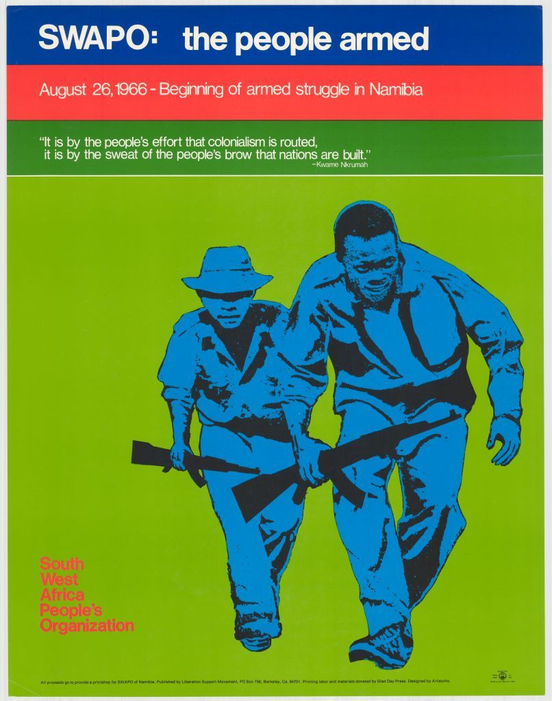 A #SWAPO poster, part of the campaign in America to raise awareness and support for their cause, and published by the Liberation Support Movement, who publicized numerous African independence movements during the 1960s and 1970s. The South West Africa People’s Organization, after fighting against South Africa, would become the main political p…Read More