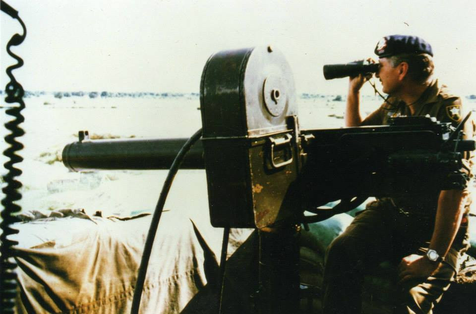 This is a water cooled .50 (50 calibre) Browning Machine Gun, seen here in the South West African/Namibian Opertional Area during the Bush War.