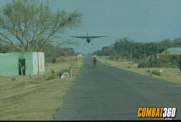 SAAF AM.3C Bosbok taking of from a road in Angola