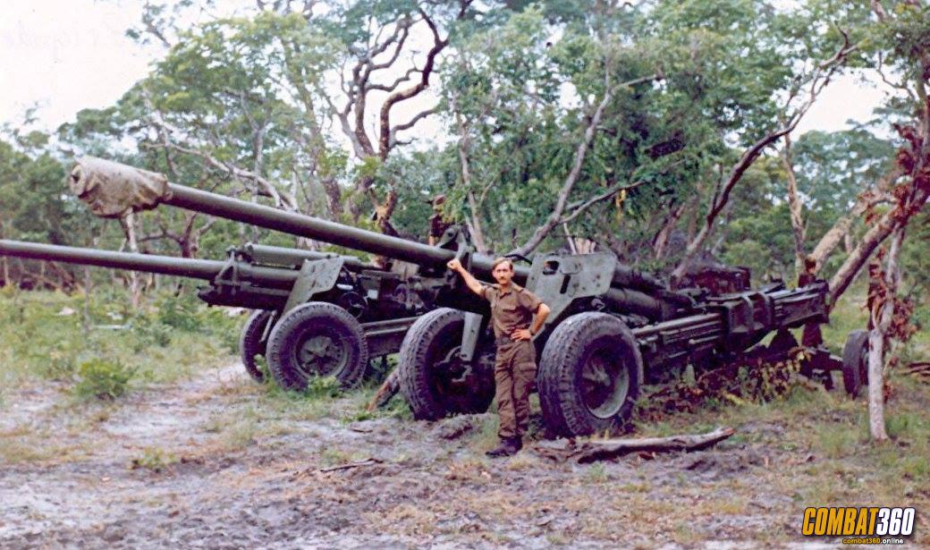 Soviet manufactured 130mm M-46 Artillery Towed Guns captured by the SADF during Ops Hooper in 1988.