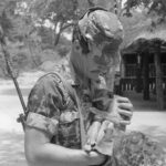 South African 1 Recce operator L CPL Ribeiro, missing and listed as dead during casualty transport in Angola, August 1976. He served as an Angolan paratrooper before joining the SADF. Ribeiro was one of the founding members of 32 Battalion. Here he is wearing “Recce 1st camo pattern” which was the inspiration behind 32Bn camo