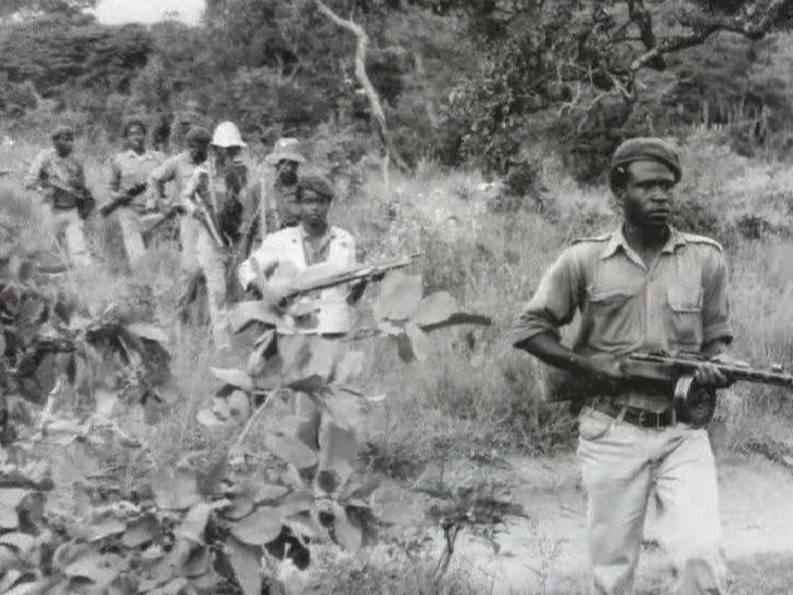from left Peter Nanyemba (then SWAPO’s Secretary Of Defence),Colonel Nikolai Khrushkin of the red Army and military Advisor to PLAN and Uuno ‘Kanana’ Shaanika (then North West Front Commander).