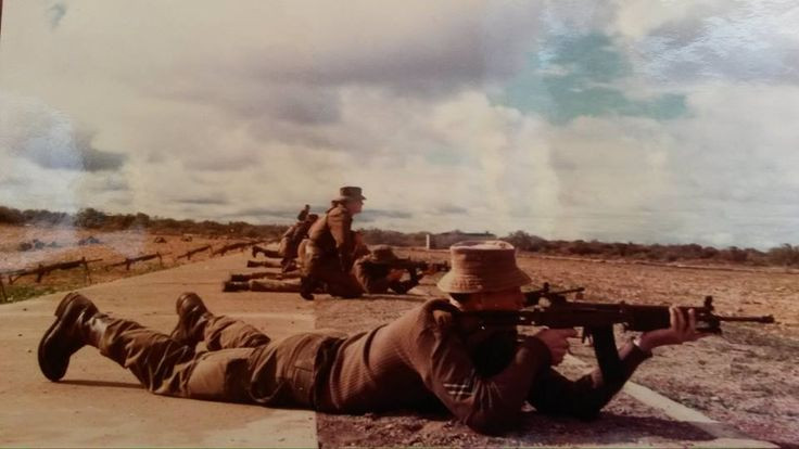 SADF 25 pounder crew in action, 1977. Good detail of their Pattern 70 webbing and Ottom helmets.