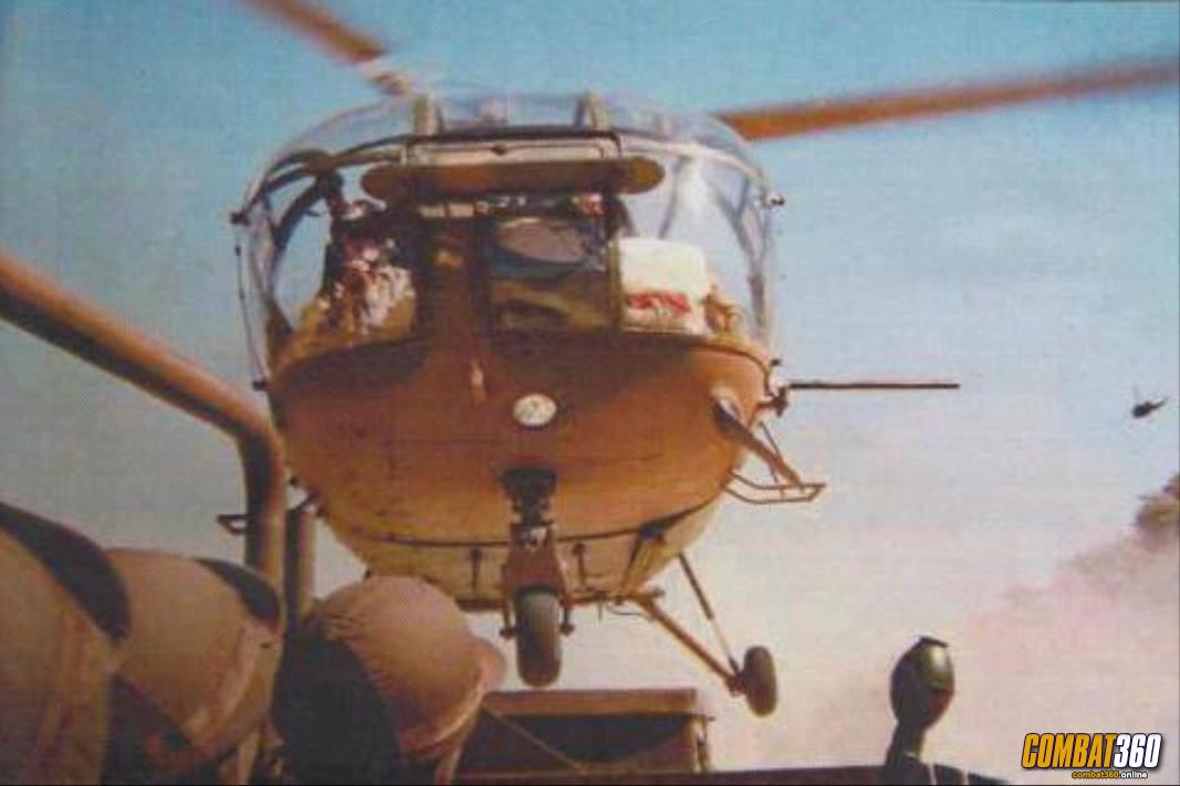 There is a lot to be said for the SAAF Alouette III gunship pilots, skill and a real sense of on edge flying would be an understatement. Here a SAAF Alouette flies up close and personal to a moving SADF “Buffel” APC (Armoured Personnel Carrier) somewhere during the Border War.