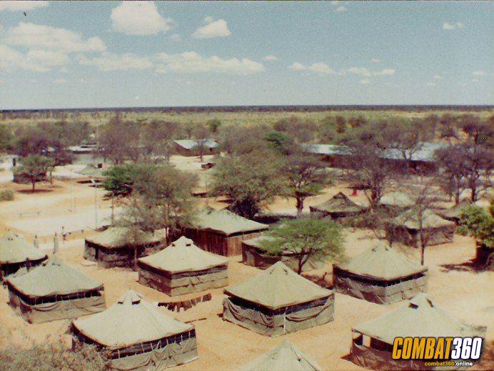 This photograph was taken from a South African Air Force Alouette gunship helicopter called in for close fire support to a SADF Army ground patrol who had hit a contact and where taking intense small arms fire from civilian dwellings in a village.