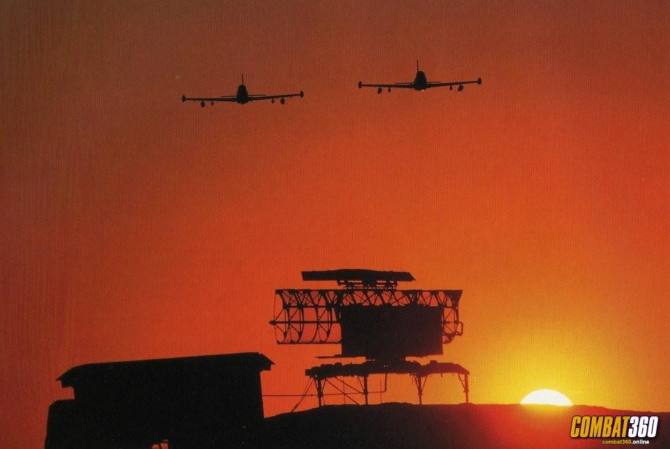 Two South African Air Force Impala Mk II jets over a radar unit at Air Force Base Ondangwa