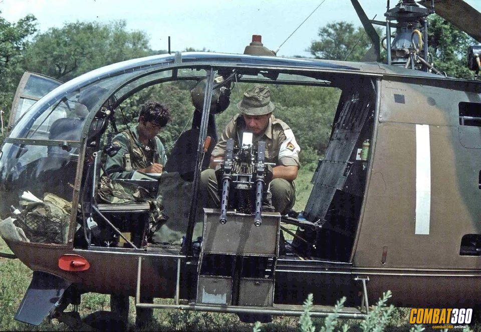 Alouette III at Assembly Point Juliet, Zezani, Rhodesia, 1980